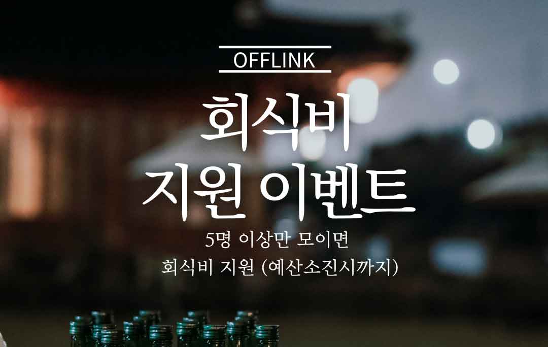 5명 이상의 오프링크 인원이 함께한 모임이라면, 간단한 인증샷과 영수증 제출로 회식비 지원을 받아보세요
